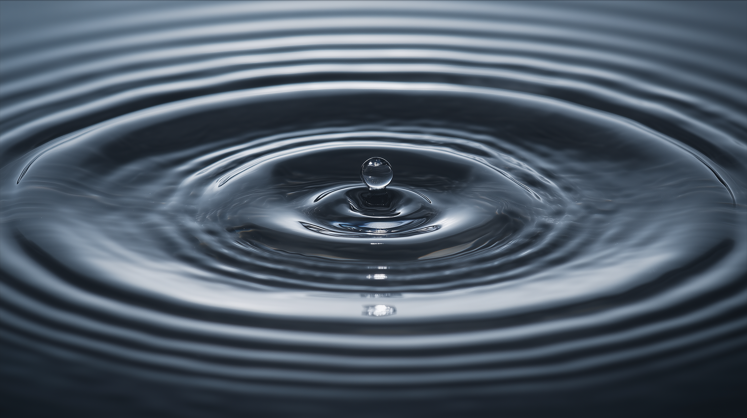 macro scientific photography of wave reflection across a calm liquid surface, a droplet impact producing outward ripple waves that encounter a boundary and reflect inward, laboratory wave physics visualization, realistic fluid surface behavior, cool blue grey tonal discipline, soft overhead diffused lighting, shallow depth of field, restrained highlights, no glow, no cinematic drama --ar 16:9 --raw --quality 2 --stylize 35 --chaos 8